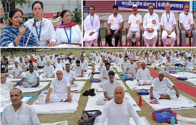 फगवाड़ा 21 जून (प्रीति) भारतीय योग संस्थान की ओर से 11वां अंतर्राष्ट्रीय योग दिवस संस्थान के प्रधान अनिल कोछड़ और उनकी टीम की देखरेख में स्थानीय जैन माडल हाई स्कूल में अत्यंत उत्साह के साथ मनाया गया। आयोजित कार्यक्रम में शहर के मेयर रामपाल उप्पल विशेष अतिथि के रूप में शामिल हुए और योग के प्रति अपनी प्रतिबद्धता व्यक्त की। वहीं, संस्थान के प्रधान श्री अनिल कोछड़ ने अंतर्राष्ट्रीय योग दिवस के महत्व पर प्रकाश डाला और योग को दैनिक जीवन में अपनाने का संदेश दिया। इस विशेष अवसर पर लगभग चार सौ साधकों ने योग शिविर में भाग लिया। कार्यक्रम की शुरुआत सर्वप्रथम दीप प्रज्वलित करके गायत्री मंत्र के साथ हुई। जिसका संचालन सविता पराशर और अर्चना बत्रा ने किया। योग सत्र का नेतृत्व करने वाले प्रशिक्षकों में दिनेश सिंगला, परमिंदर सिंह, दविंदर सिंह, संदीप मल्होत्रा, संदीप गर्ग और धीरज वैद्य ने योग साधकों को सामूहिक रूप से विभिन्न योग आसन और प्राणायाम की क्रियाओं का अभ्यास करवाया। कार्यक्रम का मंच संचालन श्रीमती नीलम चोपड़ा द्वारा किया गया। उन्होंने कार्यक्रम को सफल बनाने में सहयोग के लिये सभी का आभार प्रकट किया और कहा कि यह आयोजन भारतीय संस्कृति, स्वास्थ्य और मानसिक संतुलन को बढ़ावा देने की दिशा में एक महत्वपूर्ण कदम रहा। इस अवसर पर रोटेरियन सतपाल सेठी, पंकज गौतम, निखिल गुप्ता, रमेश सचदेवा, सुरिंदर चोपड़ा, सुरिंदर चावला, राकेश अग्रवाल और राकेश बंसल जैसे अन्य गणमान्य उपस्थित थे।