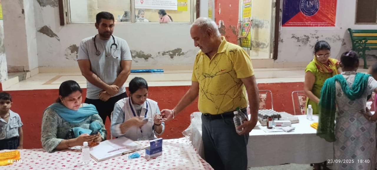 ज्ञात रहे विश्व शांति सेवा एवं सम्मान संगठन द्वारा अंबाला शहर के श्री महाकाली मां दुख भंजनी मंदिर जैन कॉलेज रोड में शारदीय नवरात्र पर दसवां निशुल्क नवदिवसीय मेडिकल कैंप 22 सितंबर 2025 से 1 अक्टूबर 2025 तक आयोजित किया गया है जिसमें विभिन्न कुशल चिकित्सकों की टीम निरंतर अपनी सेवाएं प्रदान कर रही हैं और सैकड़ो की संख्या में अंबाला के नागरिक संगठन की इन सेवाओं का लाभ उठा रहे हैं। संगठन की ओर से दंत रोग विशेषज्ञ, हड्डी रोग विशेषज्ञ ,नेत्र जांच विशेषज्ञ, फुल बॉडी स्क्रीनिंग टेस्ट, इलेक्ट्रो होम्योपैथी विशेषज्ञ, मेडिसिन विशेषज्ञ, शुगर बीपी जांच तथा एक्यूप्रेशर पद्धति विशेषज्ञ डॉक्टर्स की विशाल टीम लगातार अपनी सेवाएं प्रदान कर रही हैं। इसी मेडिकल कैंप के प्रांगण में मानव अधिकार की टीम द्वारा यह जागरूकता शिविर आयोजित किया गया जिसमें संगठन के अधिकारियों ने भरपूर सहयोग किया और अंगवस्त्र पहनाकर समिति की टीम को सम्मानित किया तथा समिति द्वारा किए जा रहे प्रयासों की भूरी-भूरी प्रशंसा की। समिति की प्रधान श्रीमती जीवन ज्योति जी ने विश्व शांति सेवा एवं सम्मान संगठन तथा संगठन महामंत्री राजेश कुमार अग्रवाल का विशेष आभार व्यक्त करते हुए संगठन द्वारा चलाई जा रही सामाजिक गतिविधियों की प्रशंसा की तथा भविष्य में भी साथ-साथ मिलकर समाज कल्याण के लिए एकजुट होकर काम करने का आश्वासन दिया। संगठन की ओर से संरक्षक हरिंदर शर्मा, प्रधान मीना गर्ग, उप प्रधान सतनाम नागपाल, महामंत्री राजेश कुमार अग्रवाल, कोषाध्यक्ष महेंद्र सिंह रिंकू, डॉक्टर सौरव, डॉक्टर संदीप भारद्वाज, डॉ विपिन गौतम, ऑडिटर प्रमोद गर्ग, महिला टीम से नीरू बाला, सरोज अग्रवाल, वीणा राय इत्यादि ने शिविर के सफल संचालन में अपना सहयोग दिया।