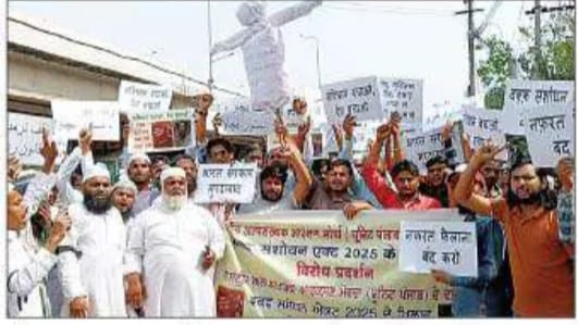 ਫਗਵਾੜਾ, 19 ਅਪੈ੍ਰਲ ( ਪ੍ਰੀਤੀ ਜੱਗੀ)-ਰਾਸ਼ਟਰੀ ਅਲਪ ਸੰਖਿਅਕ ਆਕਰਸ਼ਨ ਮੋਰਚਾ ਦੇ ਆਗੂ ਸਰਵਰ ਗੁਲਾਮ ਸੱਬਾ ਦੀ ਅਗਵਾਈ ਹੇਠ ਸਥਾਨਕ ਮੁਸਲਿਮ ਭਾਈਚਾਰੇ ਦੇ ਮੈਂਬਰਾਂ ਨੇ ਵਕਫ਼ ਸੋਧ ਐਕਟ 2025 ਦੇ ਵਿਰੋਧ ‘ਚ ਨਾਈਆਂ ਵਾਲਾ ਚੌਂਕ ਤੋਂ ਰੈਸਟ ਹਾਊਸ ਤੱਕ ਰੋਸ ਮਾਰਚ ਕੱਢਿਆ ਤੇ ਨਾਅਰੇਬਾਜ਼ੀ ਕੀਤੀ ਤੇ ਰੈਸਟ ਹਾਊਸ ਦੇ ਬਾਹਰ ਭਾਜਪਾ ਦੀ ਅਗਵਾਈ ਵਾਲੀ ਕੇਂਦਰ ਸਰਕਾਰ ਦਾ ਪੁਤਲਾ ਸਾੜਿਆ ਤੇ ਬਾਅਦ ‘ਚ ਬੀ.ਡੀ.ਪੀ.ਓ ਨੂੰ ਰਾਸ਼ਟਰਪਤੀ ਦੇ ਨਾਂ ‘ਤੇ ਮੰਗ ਪੱਤਰ ਦਿੱਤਾ | ਇਸ ਮੌਕੇ ਬੋਲਦਿਆਂ ਸੱਬਾ ਨੇ ਦੋਸ਼ ਲਗਾਇਆ ਕਿ ਵਕਫ਼ ਐਕਟ ਗੈਰ ਸੰਵਿਧਾਨਿਕ ਹੈ ਤੇ ਭਾਜਪਾ ਦੀ ਅਗਵਾਈ ਵਾਲੀ ਕੇਂਦਰ ਸਰਕਾਰ ਦਾ ਇਰਾਦਾ ਦੇਸ਼ ਭਰ ‘ਚ ਵਕਫ਼ ਜਾਇਦਾਦਾਂ ‘ਤੇ ਕਬਜ਼ਾ ਕਰਨ ਦਾ ਹੈ | ਉਨ੍ਹਾਂ ਮੰਗ ਕੀਤੀ ਕਿ ਵਕਫ਼ ਸੋਧ ਐਕਟ ਨੂੰ ਰੱਦ ਕੀਤਾ ਜਾਵੇ ਤੇ ਇਸ ਮਾਮਲੇ ‘ਤੇ ਸੁਪਰੀਮ ਕੋਰਟ ਦੇ ਅੰਤਿਮ ਆਦੇਸ਼ਾਂ ਲਾਗੂ ਨਾ ਕੀਤਾ ਜਾਵੇ | ਰੋਸ ਮਾਰਚ ਦੌਰਾਨ ਉਨ੍ਹਾਂ ਨੇ ‘ਵਕਫ਼ ਬਿੱਲ ਵਾਪਸੀ ਲੋ’, ‘ਵਕਫ਼ ਬਿੱਲ ਮਨਜ਼ੂਰ ਨਹੀਂ’, ਭਾਜਪਾ ਮੁਰਦਾਬਾਦ ਦੇ ਨਾਅਰੇ ਲਗਾਏ | ਇਸ ਮੌਕੇ ਕਾਯਿਰੀ ਗੈਯੂਰ ਸਮੇਤ ਵੱਡੀ ਗਿਣਤੀ ‘ਚ ਮੁਸਲਿਮ ਭਾਈਚਾਰੇ ਦੀ ਆਗੂ ਸ਼ਾਮਿਲ ਸਨ |